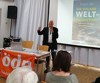 Zum Vortrag „Klimakrise, Energiekrise, Flüchtlingskrise“ des vielfach ausgezeichneten Journalisten, Fernsehmoderators und Buchautors Dr. Franz Alt…