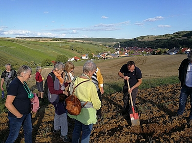 Ulrich und Simone Seitz zeigten den interessierten Teilnehmern im Rahmen einer kleinen Wanderung einen ihrer Weinhänge kurz vor der Lese und mehrere…