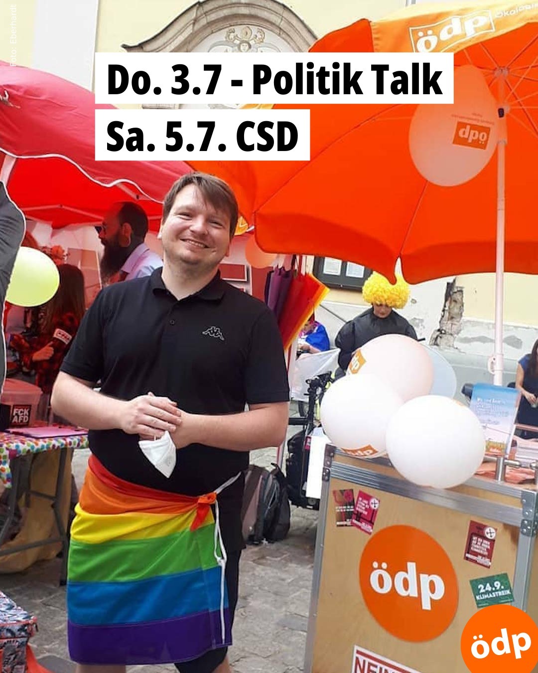 Zum diesjährigen CSD in Regensburg findet am 3.7. um 19:00 Uhr im Schreiberhaus ein Politik Talk statt. Für die ÖDP ist Hannes Eberhardt vertreten.…